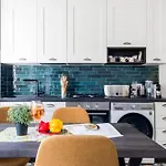 Apartmán je vybaven kuchyňkou se spotřebiči na přípravu vlastního nádobí. Apartmán nabízí také kuchyňku na balkoně.